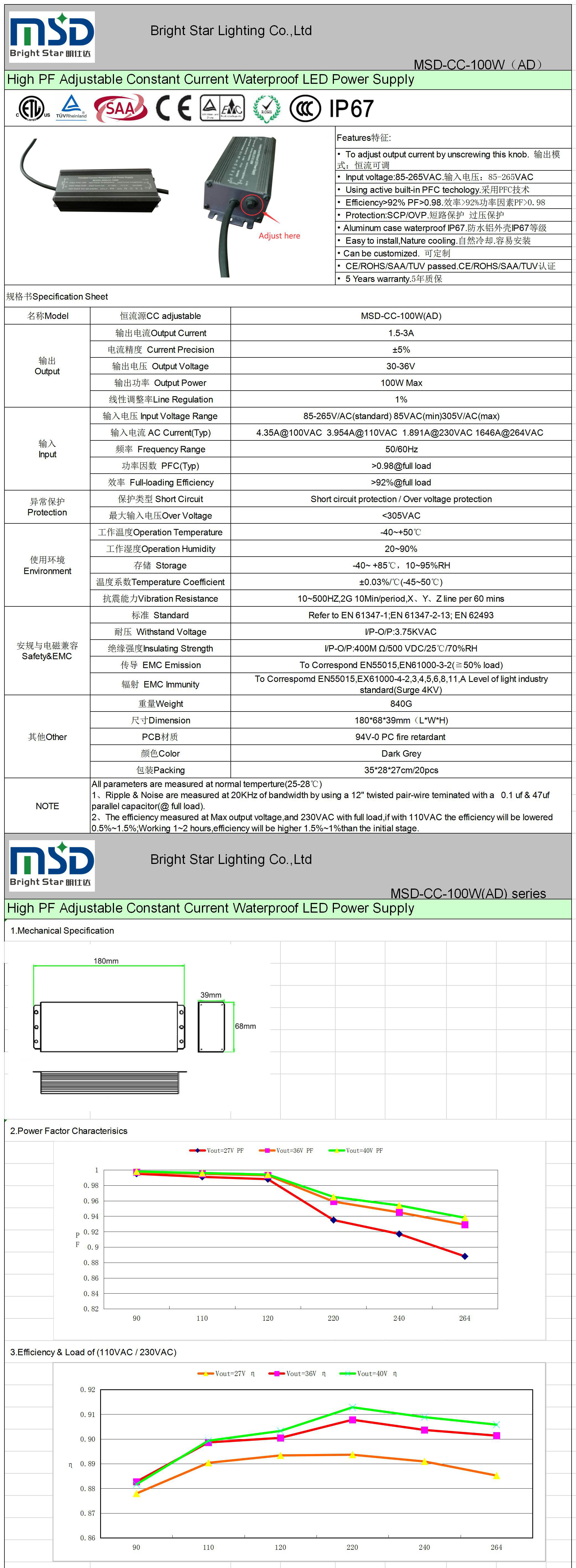 • Efficiency>92% PF>0.98.效率>92%功率因素PF>0.98