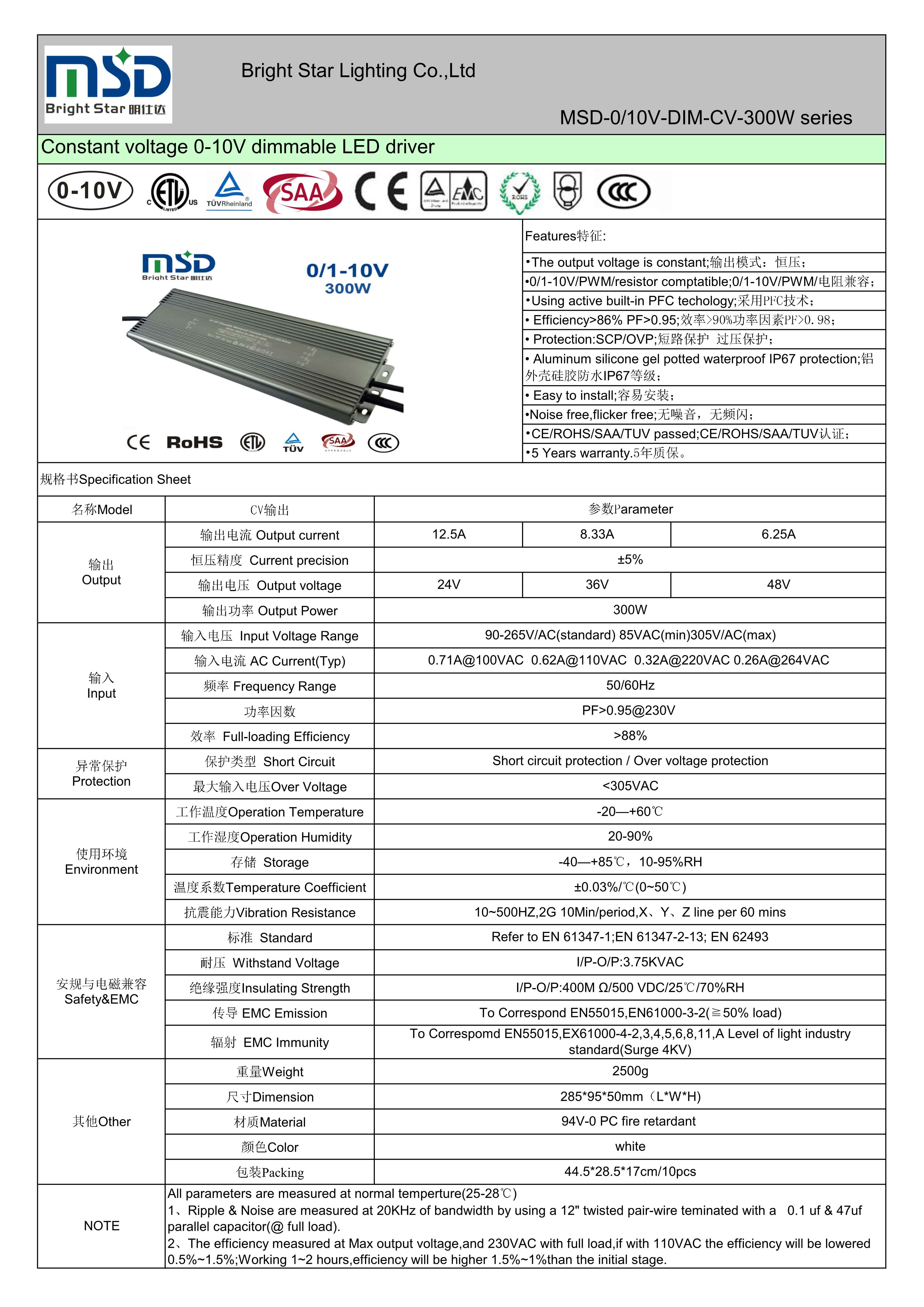 ●      CE/ROHS/SAA/TUV/ETL/CCC认证