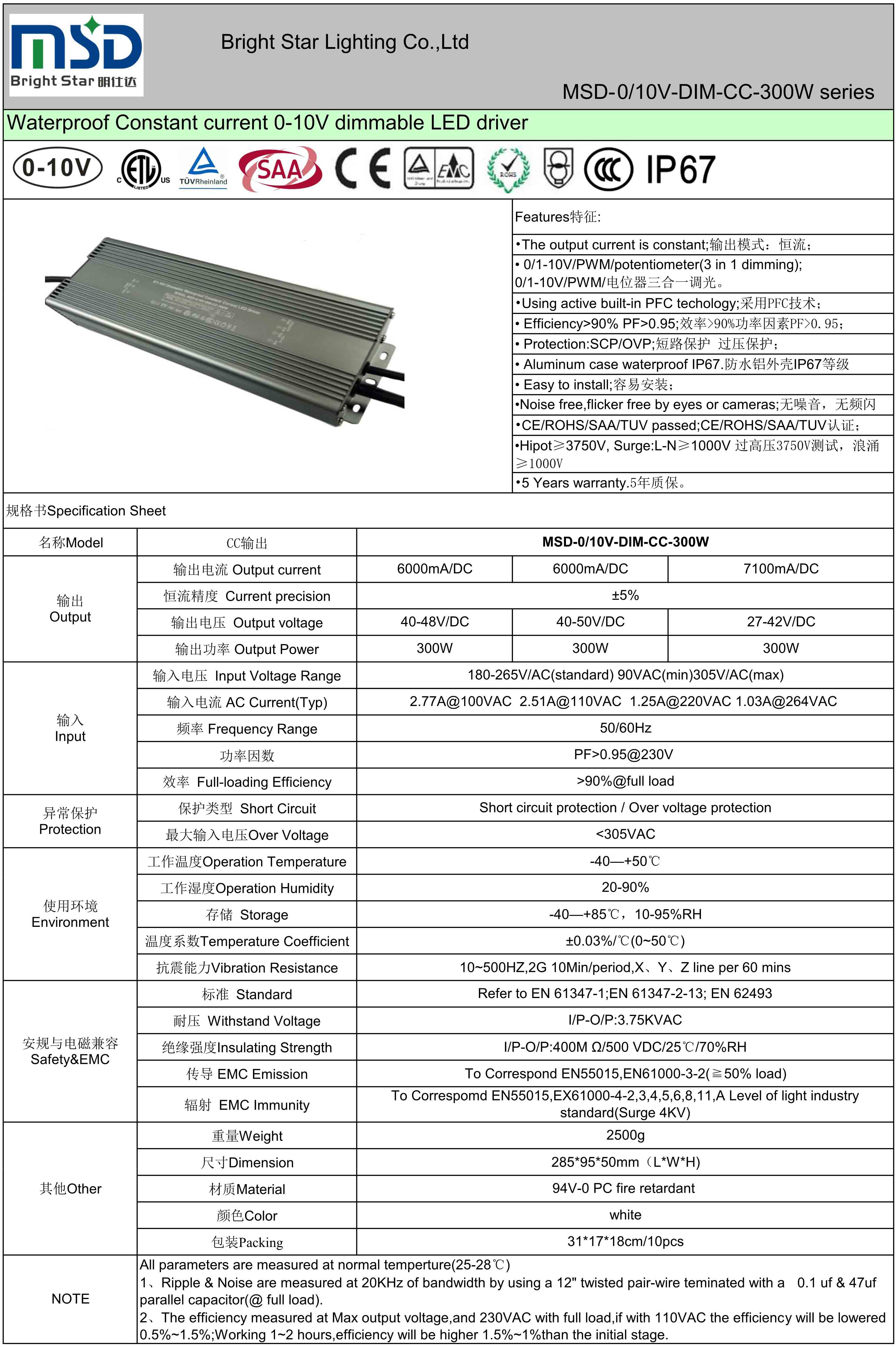 ●      CE/ROHS/SAA/TUV/ETL/CCC认证