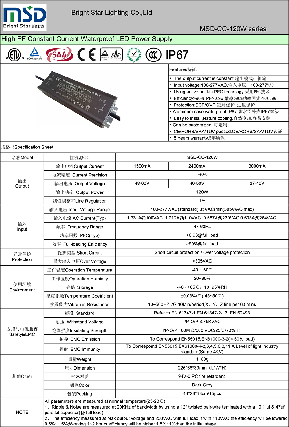 ● CE/ROHS/SAA/TUV/ETL/CCC认证
