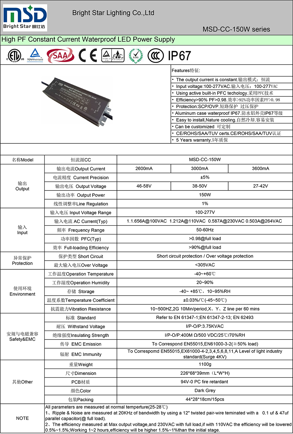 ● CE/ROHS/SAA/TUV/ETL/CCC认证