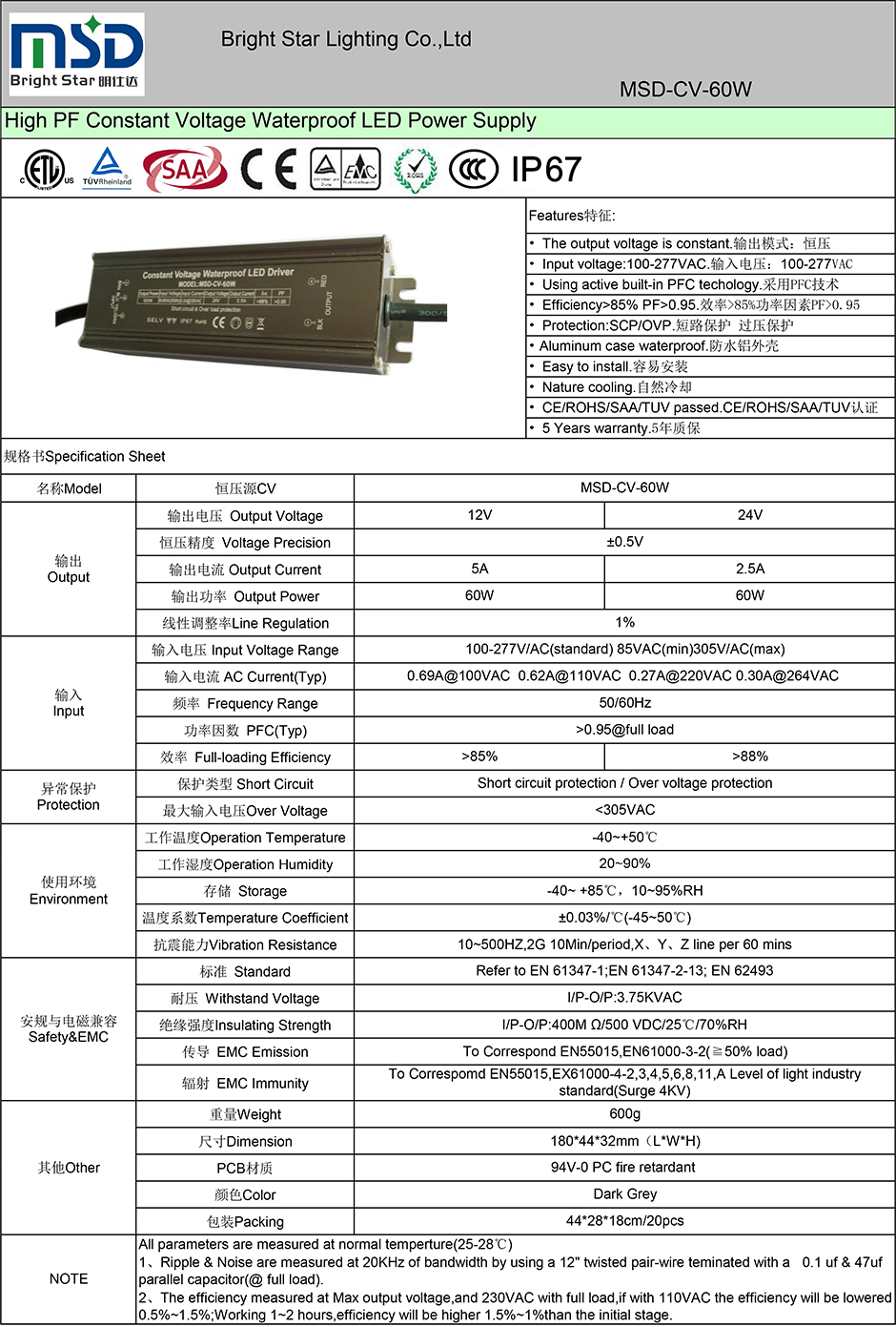● CE/ROHS/SAA/TUV/ETL/CCC认证