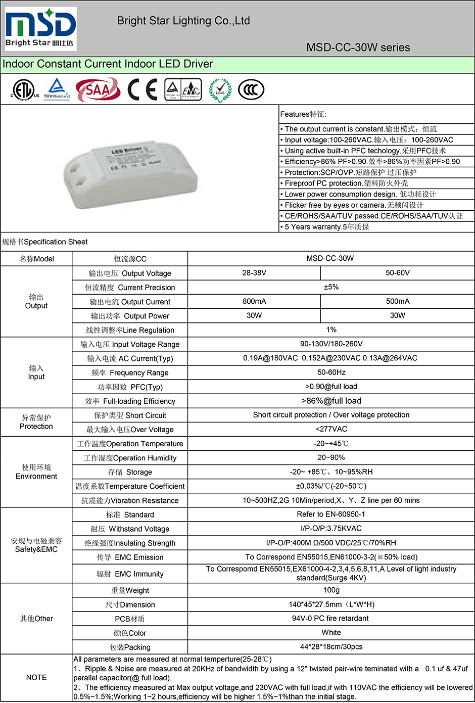 ● CE/ROHS/SAA/TUV/ETL/CCC认证