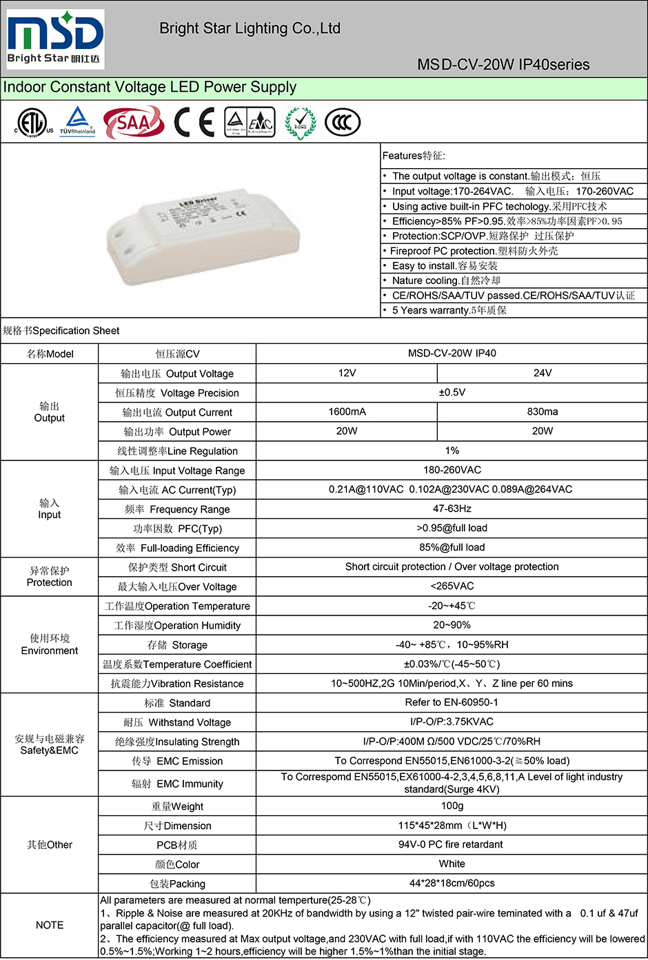 ● CE/ROHS/SAA/TUV/ETL/CCC认证